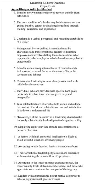 Solved Leadership Midterm Questions Topic 2 4 Chegg Com